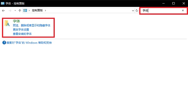 1.進入控制面板,在搜索欄搜索字體,點擊進入。