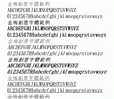 金梅創(chuàng)意字體范例是一款金梅類創(chuàng)意十足的正規(guī)字體,字體效果比較整齊,非常正式,喜歡范例字體的朋友可以下載使用看看效果如何。