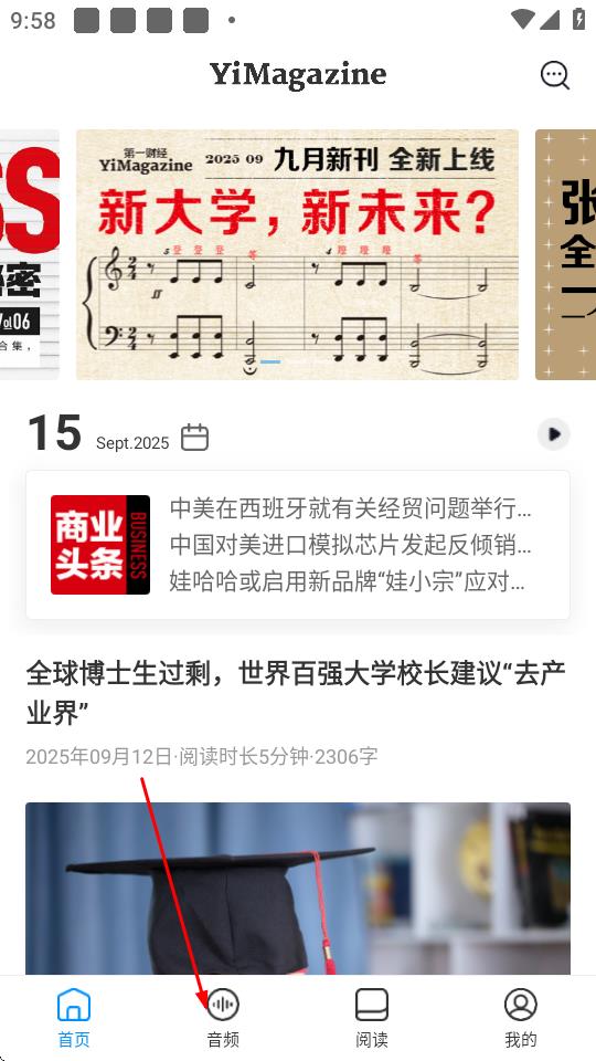1、打開相關(guān)App,點(diǎn)擊底部導(dǎo)航欄中的音頻選項(xiàng)。