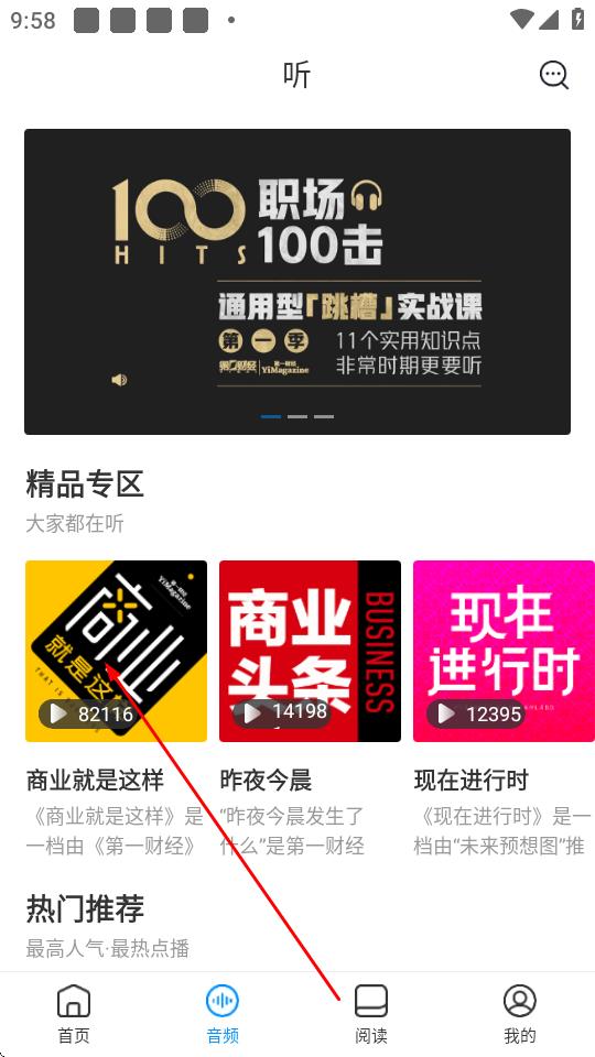 2、在音頻頁面的精品專區(qū)中,找到感興趣的的音頻節(jié)目,如商業(yè)就是這樣,點(diǎn)擊進(jìn)入。