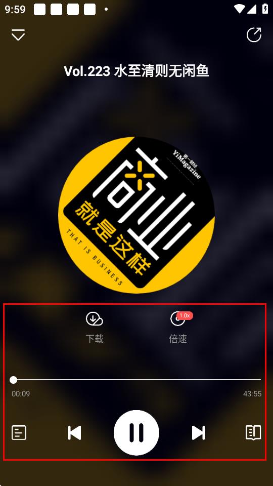 4、進(jìn)入音頻播放頁面后,即可進(jìn)行播放、暫停、倍速、下載等操作來收聽節(jié)目。