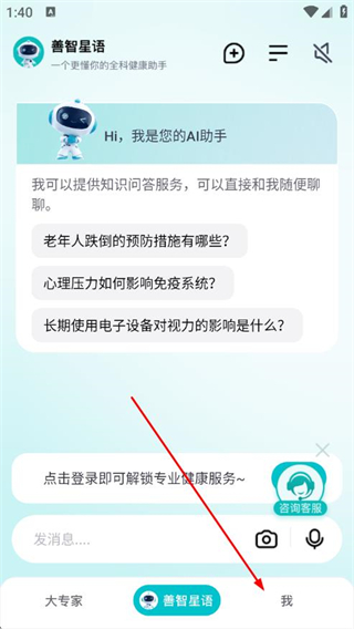 1、打開(kāi)大專家App的善智星語(yǔ)頁(yè)面,點(diǎn)擊底部的大專家選項(xiàng),進(jìn)入個(gè)人頁(yè)面。
