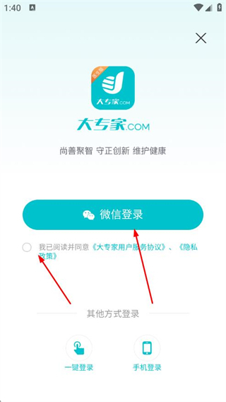 3、勾選協(xié)議,點(diǎn)擊微信登錄,完成微信授權(quán)即可。