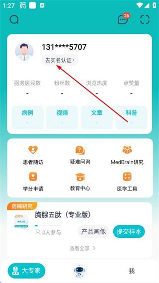 1、打開(kāi)大專家APP,點(diǎn)擊導(dǎo)航欄我。