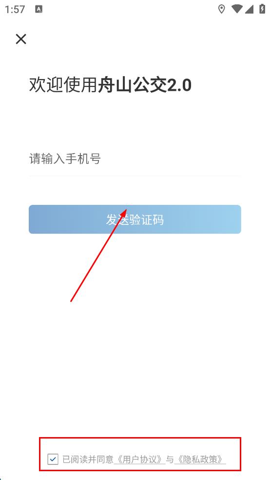 4、確認(rèn)后返回登錄界面,輸入手機(jī)號,勾選“已閱讀并同意《用戶協(xié)議》與《隱私政策》”,然后點(diǎn)擊“發(fā)送驗(yàn)證碼”按鈕,接收驗(yàn)證碼后完成登錄操作。