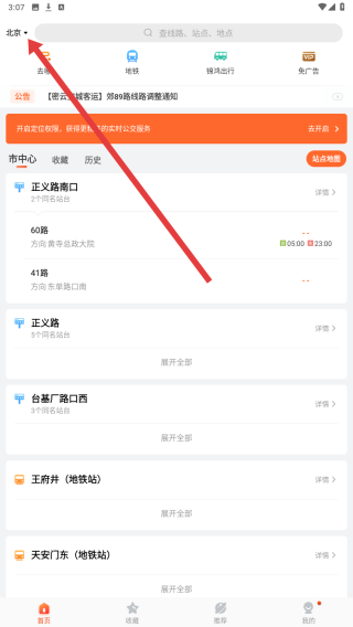 1、點擊界面左上角定位圖標,進入城市選擇頁面,可查看或切換當(dāng)前定位城市,開啟城市公交信息查詢流程。