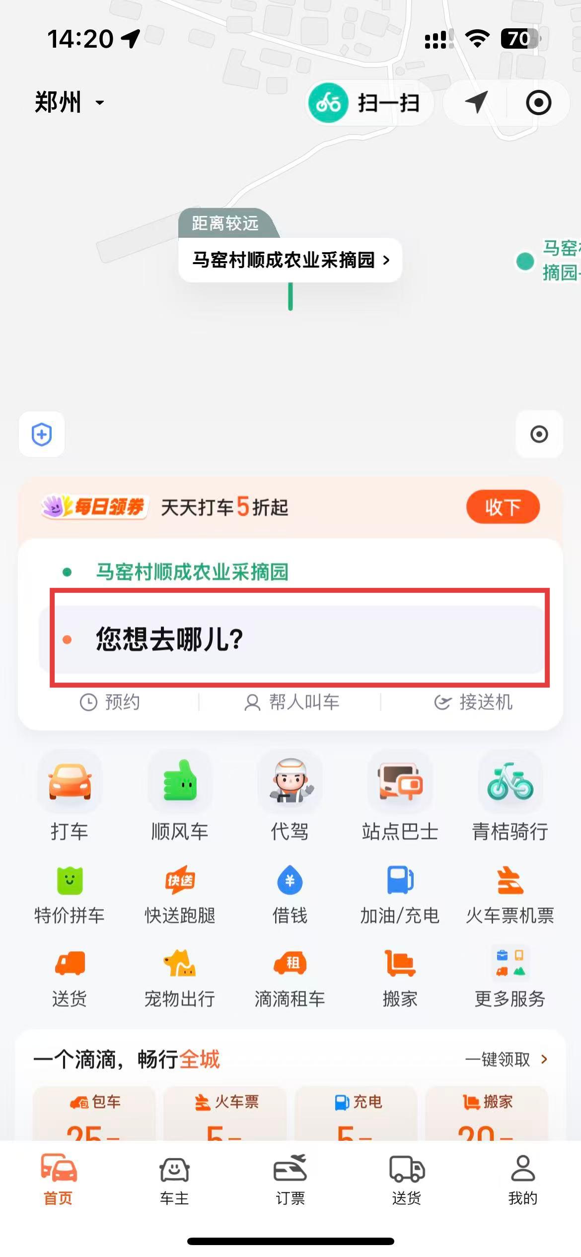 4、點擊設(shè)置終點位置,確認(rèn)起點和終點都設(shè)置好后,選擇合適的打車服務(wù)類型,然后點擊叫車按鈕即可。