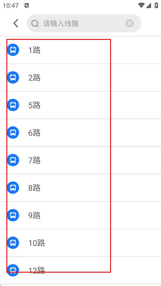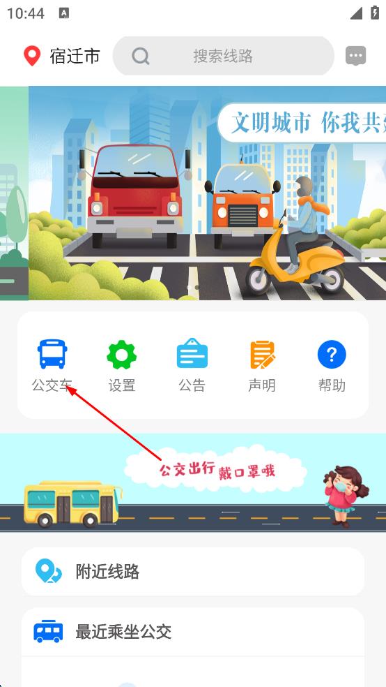 2、在應用主界面,點擊“公交車”選項,進入到公交線路選擇頁面。