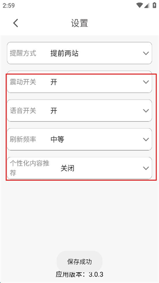 4、設置完成后,查看設置界面中震動開關、語音開關等其他設置項,確認保存成功。