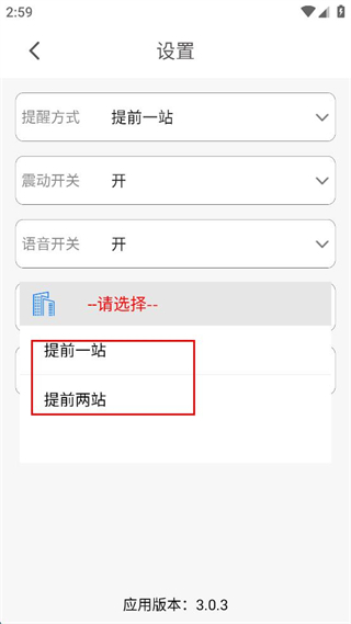 3、在提醒方式選擇列表中選擇提前兩站選項。