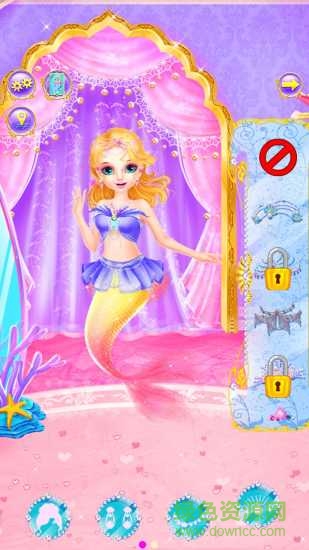 栩栩如生的海底場(chǎng)景,膚色各異的美人魚,眾多時(shí)尚的發(fā)型、發(fā)色、色彩鮮艷的裙子、套裝等等,現(xiàn)在你是美人魚啦,開始打扮吧,選擇你的禮服,你的發(fā)型,把自己打扮成一個(gè)漂漂亮亮的美人魚吧!