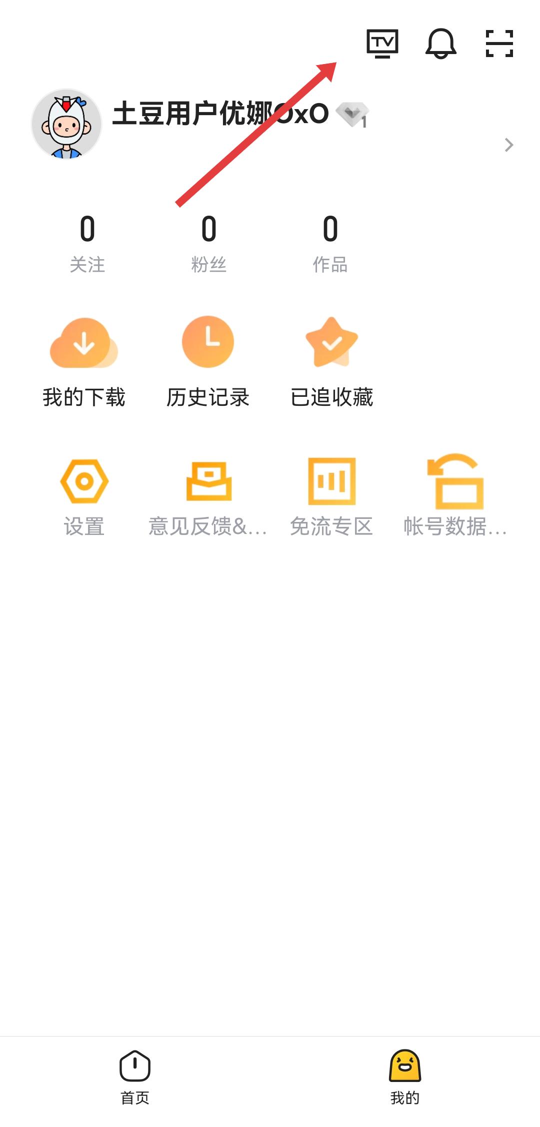 1、進(jìn)入我的頁面后,點(diǎn)擊右上角的TV圖標(biāo),這是開啟投屏功能的第一步操作。