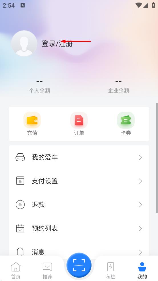 3、在個人中心頁面,點擊登錄/注冊按鈕,進入登錄頁面。