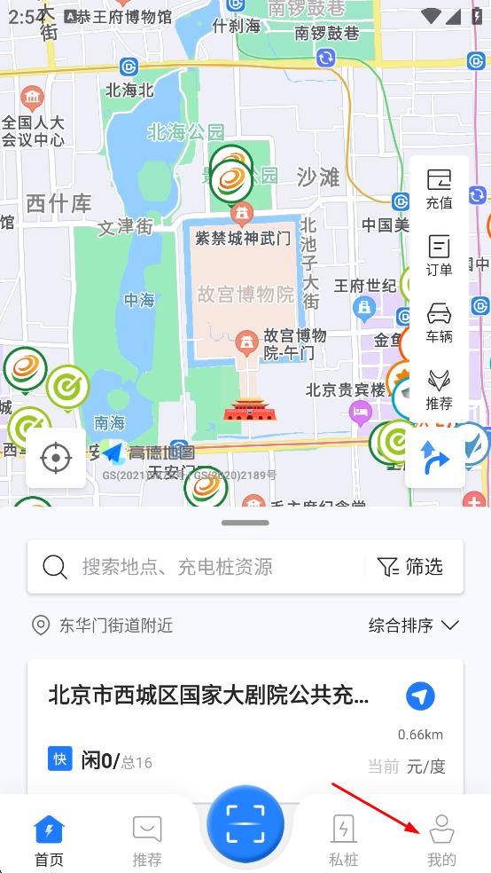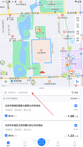 1、打開充電吧APP,進入時點擊搜素地點的搜索框。