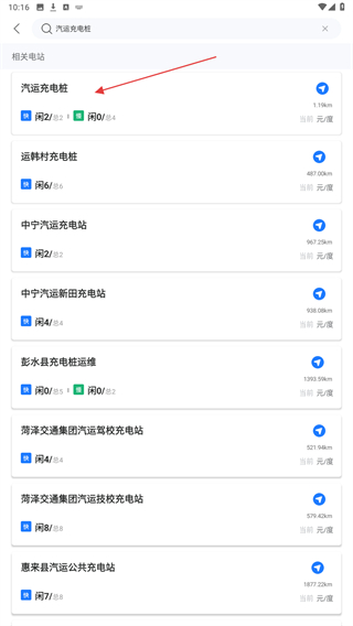 2、在輸入框內輸入充電樁后,點擊對應的目標。