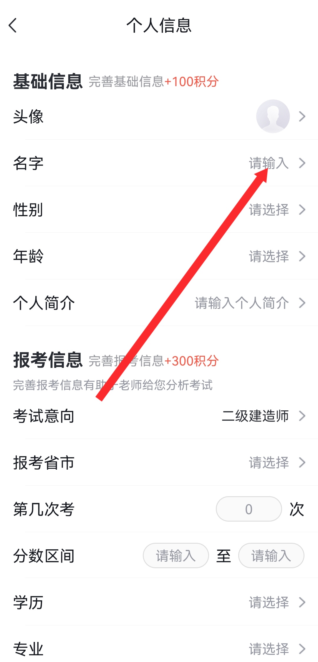 3、在編輯的頁面,點擊名字的選項,進入名字修改的界面。