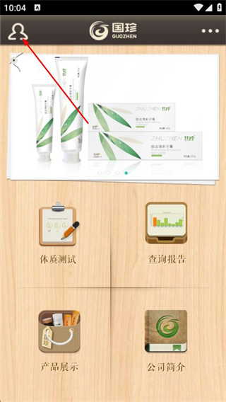 1、打開國珍養(yǎng)生APP,點擊左上角的用戶圖標(biāo)。