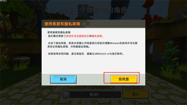 2、此時(shí)玩家將需要同意一個(gè)隱私條例政策,點(diǎn)擊彈窗右下方的【我同意】按鈕即可;