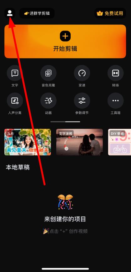 1、打開小影app進入主界面,點擊左上角的個人頭像圖標(biāo)進入個人頁面。