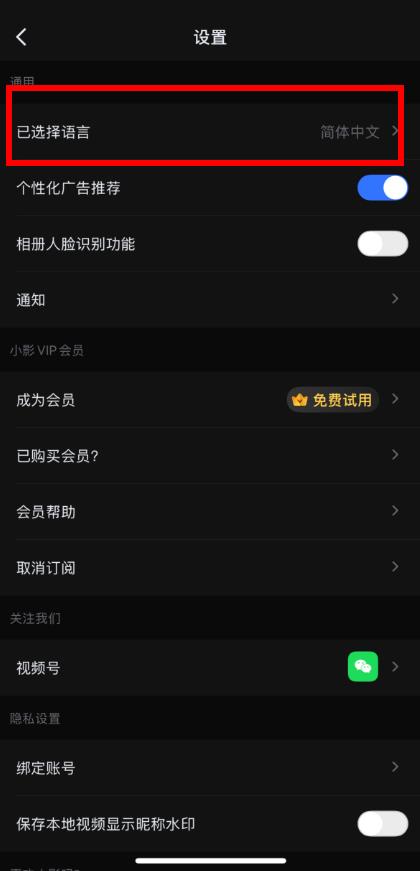3、在設(shè)置界面里,找到并點擊已選擇語言選項。