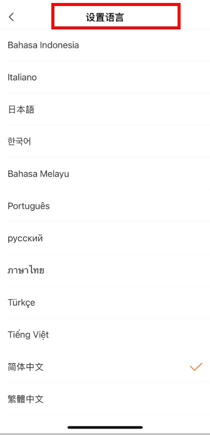 4、進入設(shè)置語言頁面后,在列出的多種語言中,點擊你想要設(shè)置的語言選項即可完成語言切換。