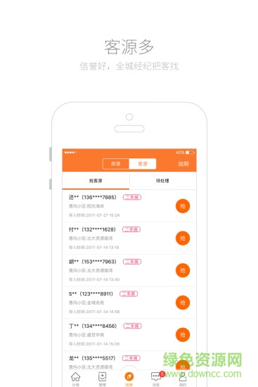 匯房匯客通app是一款免費的手機售樓軟件。房產(chǎn)經(jīng)紀人在手機上可以分享房源,獲取潛在的客戶資源。該平臺提倡全民房源共享,為房產(chǎn)經(jīng)紀人提供最有利的售樓渠道,每月輕松完成售樓業(yè)績!歡迎來綠色資源網(wǎng)下載使用。