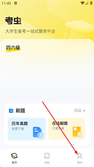 1、打開考蟲app,點(diǎn)擊底部導(dǎo)航欄中的我的選項(xiàng)。