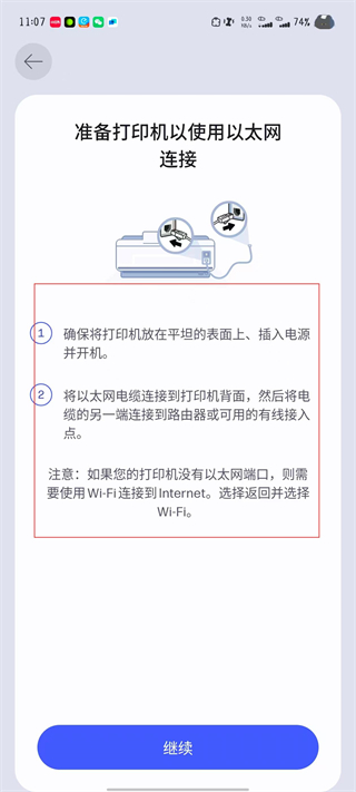 4、進入準備打印機以使用以太網連接界面,按照以下步驟操作連接即可。