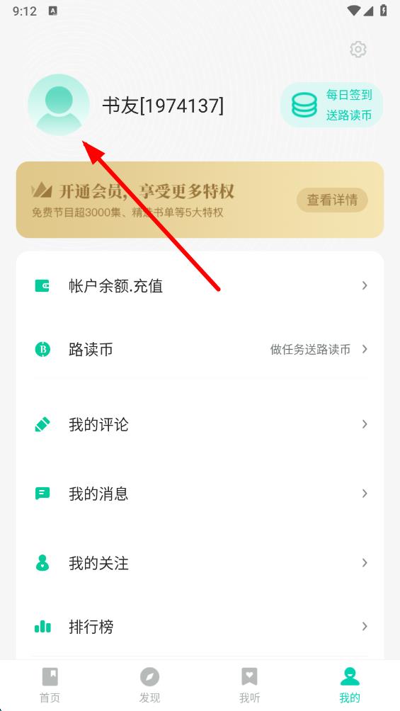 1、進(jìn)入路上讀書APP,在首頁(yè)點(diǎn)擊右下角我的按鈕。