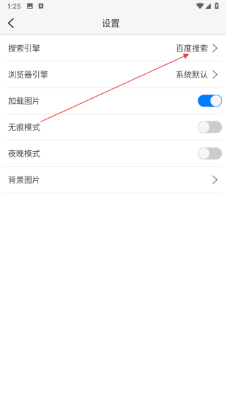 3、進(jìn)入設(shè)置頁面后,點(diǎn)擊搜索引擎選項(xiàng)。