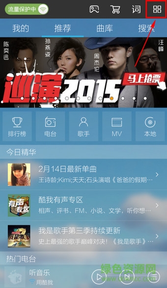 酷我原創(chuàng)電臺(tái)目前已經(jīng)合入到酷我有聲專區(qū)里,進(jìn)入推薦頁(yè),點(diǎn)擊今日精華--酷我有聲專區(qū)--熱門欄目--酷我原創(chuàng)電臺(tái)即可。或者在推薦頁(yè)中點(diǎn)擊焦點(diǎn)圖上的酷我音樂(lè)調(diào)頻也可以進(jìn)入。