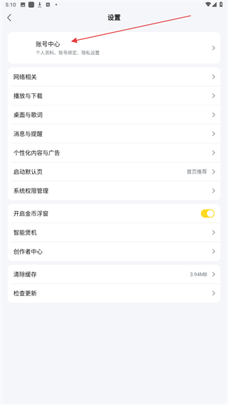 4、進(jìn)入設(shè)置的頁(yè)面內(nèi),點(diǎn)擊正上方賬號(hào)中心的區(qū)域。
