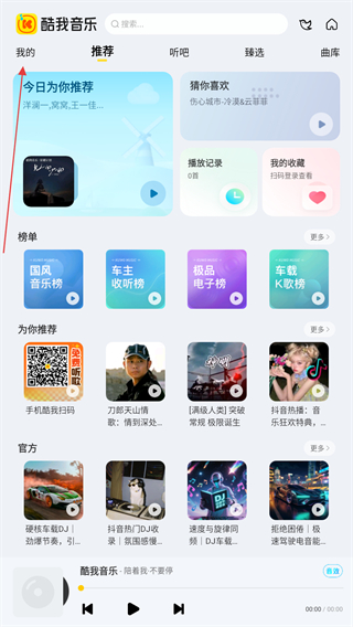 1、打開(kāi)酷我音樂(lè)盒的APP,進(jìn)入時(shí)點(diǎn)擊左上我的標(biāo)簽。