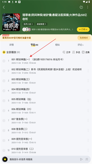 3、進(jìn)入該書(shū)詳情的頁(yè)面內(nèi),選擇并點(diǎn)擊集數(shù)即可開(kāi)始。