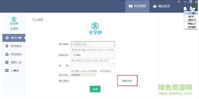 點擊“個人信息”------“賬號設置”------“更改班級”,輸入班級碼(四位字母),加入班級
