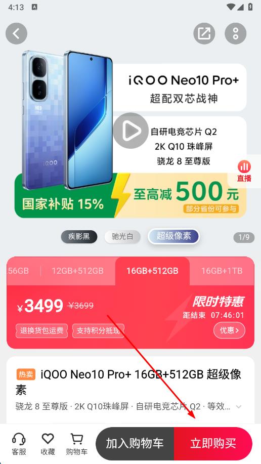 2、進(jìn)入商品詳情頁,點擊立即購買。