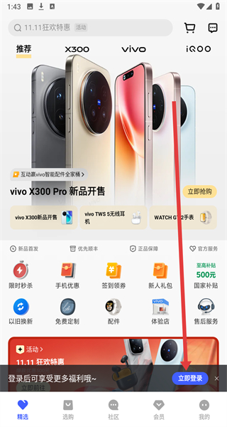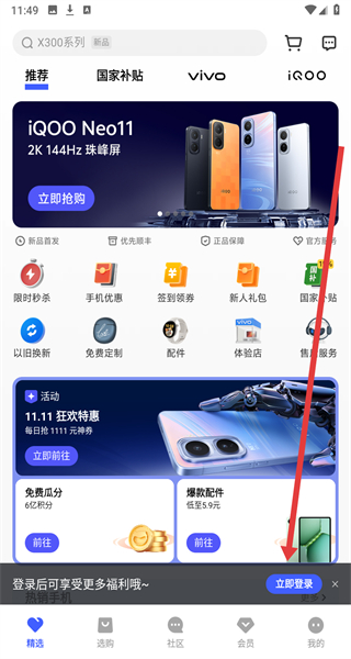 1、在vivo應(yīng)用商店首頁點擊“立即登錄”,進(jìn)入vivo帳號登錄頁面。