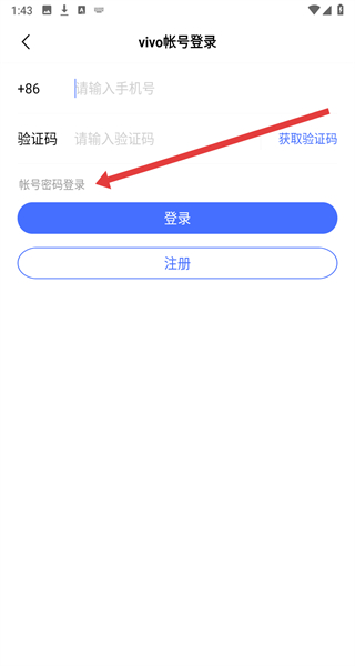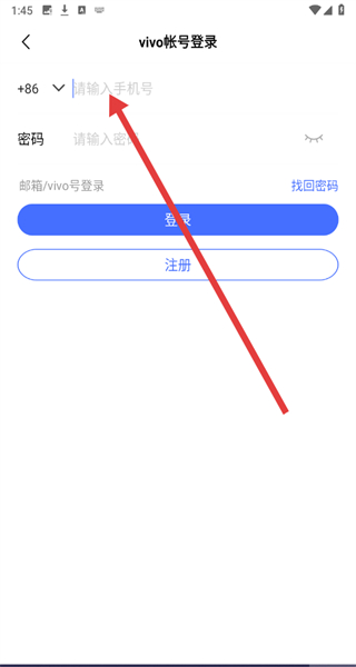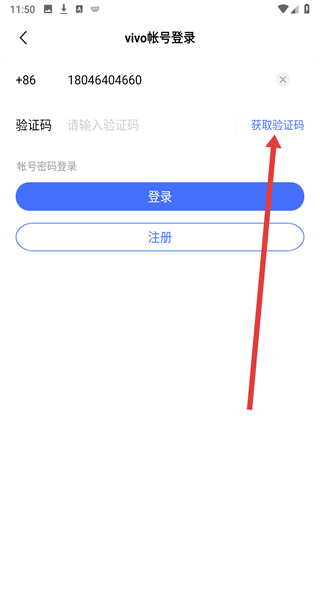 2、在vivo帳號登錄頁面,填寫好手機號碼后可以點擊“獲取驗證碼”。