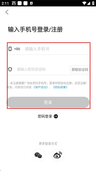 3、輸入手機號,獲取并輸入短信驗證碼,點擊登錄即可。