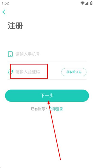 3、填入收到的驗證碼,找到并點擊下方的下一步按鈕。