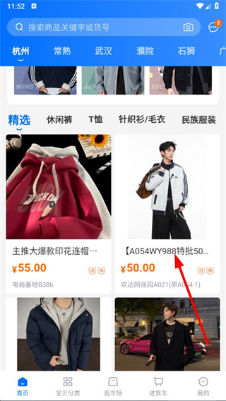 1、打開(kāi)網(wǎng)商園app,在首頁(yè)瀏覽商品,找到想要購(gòu)買的衣服后,點(diǎn)擊該商品進(jìn)入商品詳情頁(yè)。