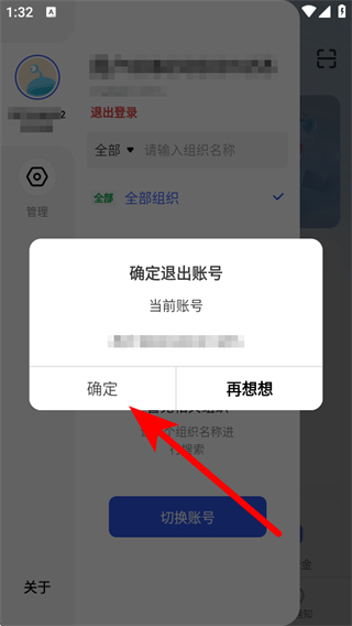 3、在確定退出賬號的提示框中,點擊確定,完成退出登錄操作。