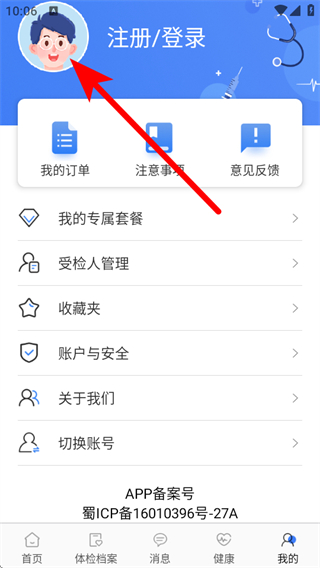 2、在個(gè)人頁(yè)面點(diǎn)擊注冊(cè)/登錄,進(jìn)入登錄注冊(cè)選擇界面。