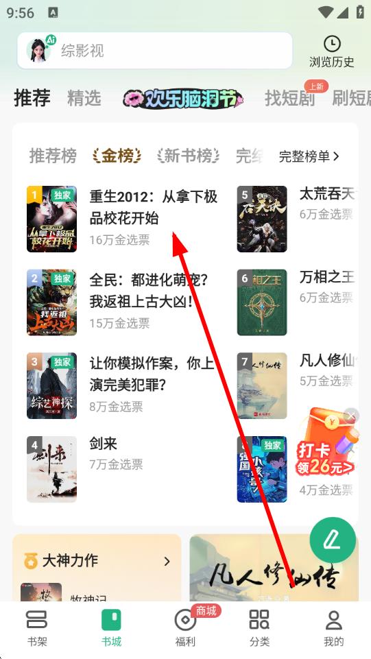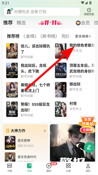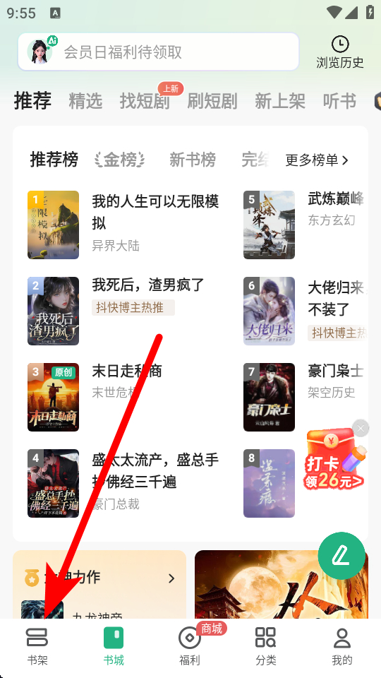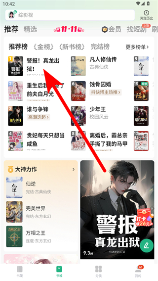 1、打開書旗小說APP,在首頁點(diǎn)擊書城,進(jìn)入書城界面,這里有推薦榜、完結(jié)榜等多種榜單,可從中挑選想讀小說。