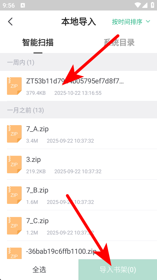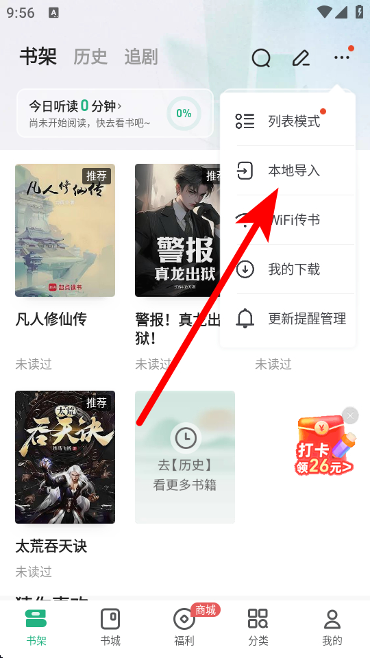 4、選擇要導(dǎo)入的本地小說文件,點(diǎn)擊導(dǎo)入書架按鈕,完成本地小說導(dǎo)入操作。