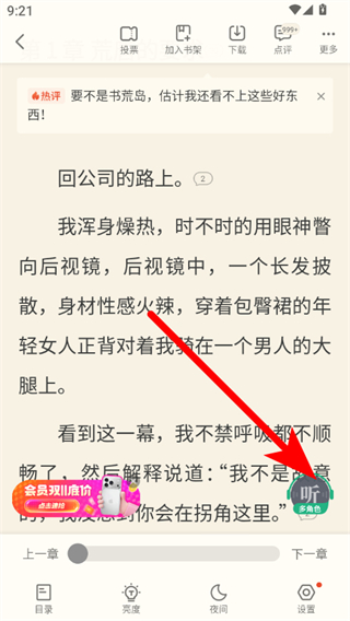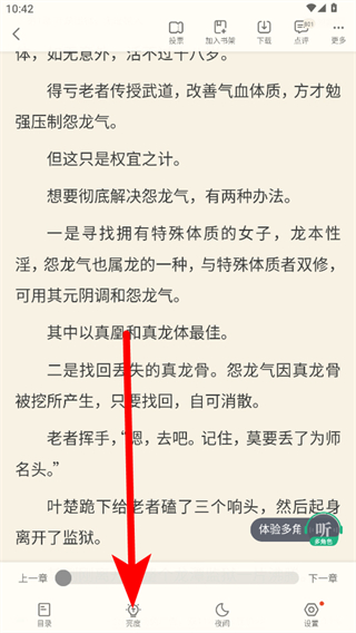 2、在小說閱讀界面,點(diǎn)擊右下角聽書按鈕,進(jìn)入聽書界面。
