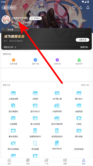 1、打開搜圖神器APP后點(diǎn)擊底部右下角的我的圖標(biāo),進(jìn)入個(gè)人中心頁面。