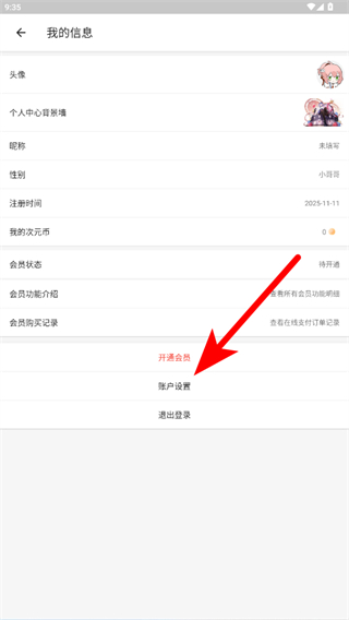 3、在我的信息頁面中找到賬戶設(shè)置選項(xiàng)并點(diǎn)擊,進(jìn)入賬號(hào)管理相關(guān)的設(shè)置頁面。