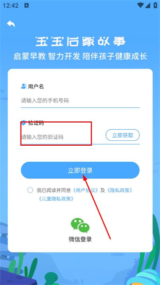 4、輸入收到的驗(yàn)證碼,點(diǎn)擊立即登錄即可完成賬號(hào)登錄。