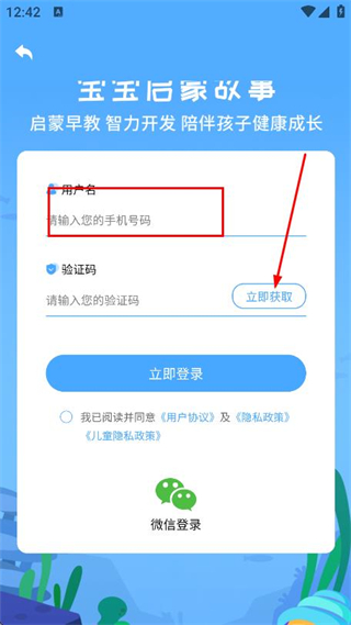 3、進(jìn)入登錄頁(yè)面后,輸入手機(jī)號(hào)碼,點(diǎn)擊獲取驗(yàn)證碼。